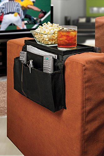 TV Remote Control Organizer Holder, Drapes Over Sofa Arm Best Quality Armrest Organizer-5 Pocket Organizer w/ Arm Rest Tray, Use for Remote Controls, Game Controller, Pens, Magazines,