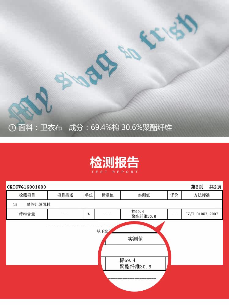 | 面 料:69.4%棉30.6%聚酯纤维颜 色:白色 |