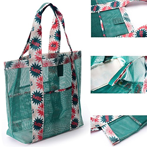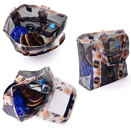 Product Description DESCRIPTION: Basic Information: ?Product Name:Mesh Beach Bag Pack Pouch?Picnic Tote Backpack Travel Sports Beach Carry Organizer Shoulder Bag Outdoor Gym Shopping Bag Storage Pocket for Men and Women ?Brand: JIAHG ? Material:Nylon mesh ? Size:35*35*12cm ? Weight: 160G ? Picture:Print ? Carrying type: Single shoulder or tote ? Occasion:Beach,Holiday,Shopping,Outdoor ? Style:Simple,Stylish ? Color: Green,Blue,Orange ?Feature:Foldaway,Lightweight,Quick-drying,Large Capacity,Portable 0