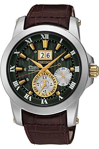 -. Title : SEIKO SNP127P1,Men's Premier Kinetic Perpetual,Stainless Steel Case,Leather Strap,Sapphire Crystal,100m WR,SNP127