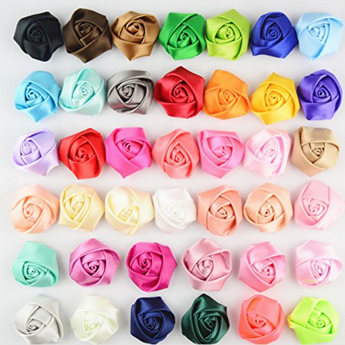 KADIWOWO Classic stereo Fabric Roses , Rose bud for headdress flowers Headbands Clips 40PCS (#2)