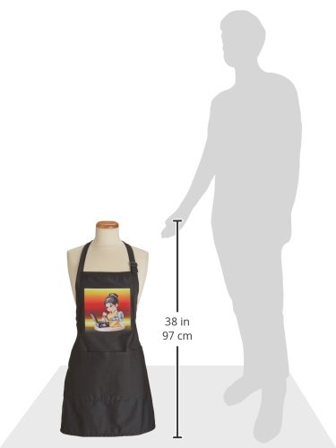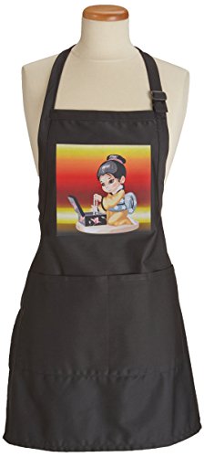 3dRose apr_60056_4 Little Asian Girl with Pearls Full Length Apron with Pockets, 22 by 30-Inch, Black