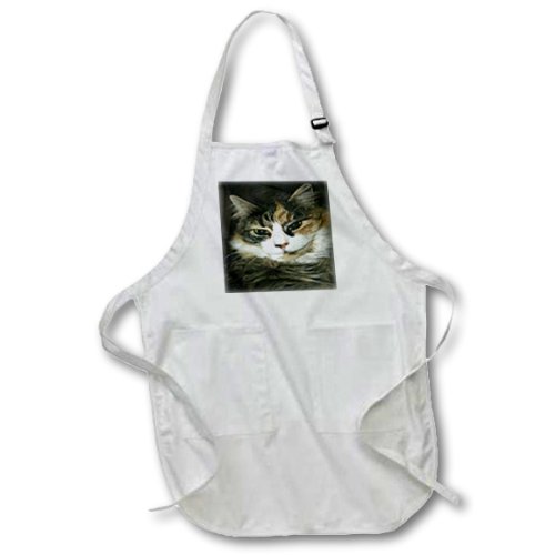 3dRose apr_49304_4 Calico Cat Closeup Full Length Apron with Pockets, 22 by 30-Inch, Black