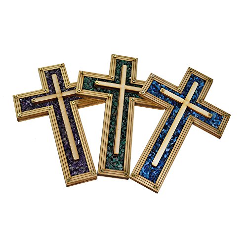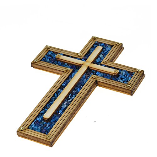 Decorative christian wooden Wall Cross Embedded With Turquoise Gem Stones 6.5" By DiLord