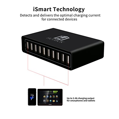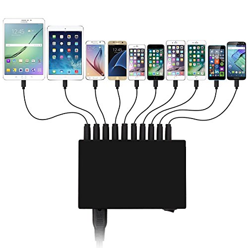 50W 10-Port USB Charger Multi-Port travel wall charger adapter for Apple iPhone 6 / 6 Plus, iPad Air 2 / mini 3 and More