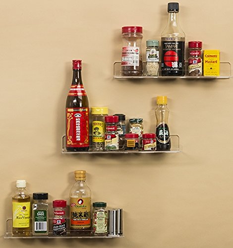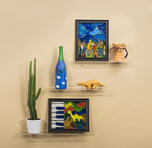 3 Acrylic Floating Wall Ledges, Ultra-Clear Extra Thick – Invisible Spice Racks - Photo Ledge or Book Display Shelf - 15" L x 4" D x 2" H (3-Pack)