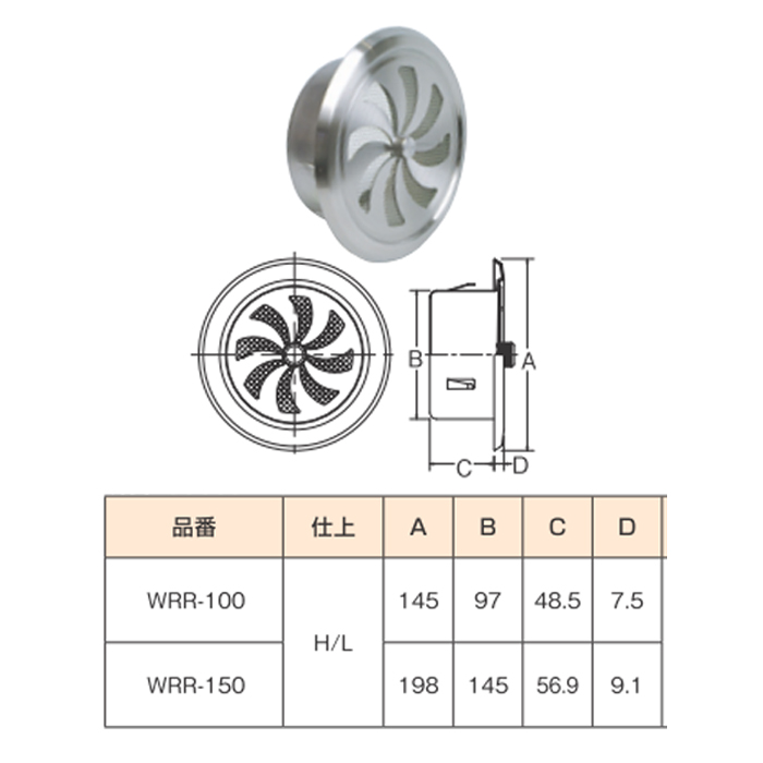 ●サビに強いステンレス製の丸型レジスターになります