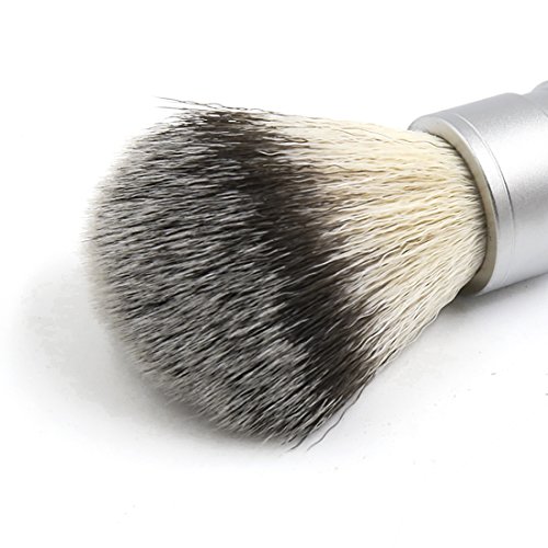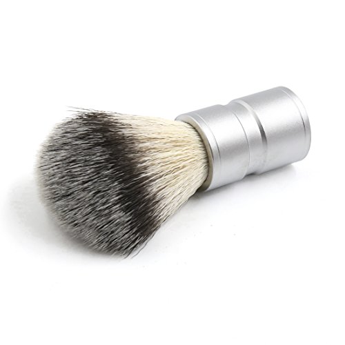 uxcell® Silver Tone Aluminum Alloy Handlebar Beard Moustache Nylon Hair Knot Shaving Brush Salon Tool for Men