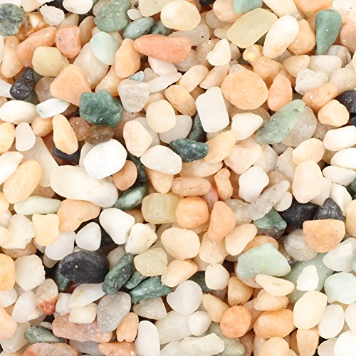 - ASSORTED SIZES. All natural stones are tumbled to produce the most smooth and polished finish. Each mesh bag of 2.2lbs contains the best selection of mixed sizes. No piece is exactly in size. The sizes range from 4mm - 6mm. For decoration only. Not food safe. Take care when placing around drains, pumps and disposals.