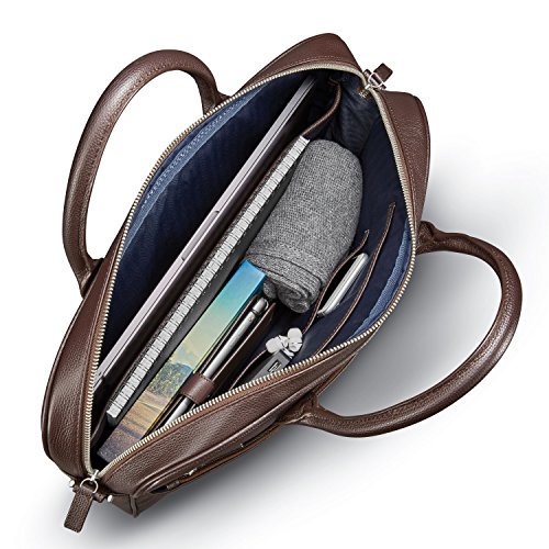 Studio : Samsonite Publisher : Samsonite Product Description Classic doesn't have to feel common. The timeless silhouettes in our Men's collections are reinvigorated in full-grain pebble and smooth leathers. Each bag is thoughtfully designed to be as versatile in functionality as they are in style. Tailored and refined, the Slim Brief is pure in look, but crafted to keep daily essentials top of mind, a perfect choice for the minimalist commuter.? Front zip pockets conveniently store all of your need-it-now essentials, providing superior organization without unzipping the main compartment.? Pass-through sleeve with zip bottom, accommodates most luggage handles for seamless, on-the-go travel. When zipped, this feature doubles as an additional pocket. ? Removable, adjustable, leather accented, shoulder straps provide a custom and comfortable wearing experience.? Metal feet protect the leather base against wear.? Removable, leather tag with bottle opener, provides a playful on-the-go accessory.? Padded tech sleeve fits up to a 14" laptop or tablet.? Two accessory pockets provide interior storage for smaller essentials.? Dust cover is included for protection and storage.? Handle drop - 5 inches.? Weight: 2.9 lbs.Body Dimensions: 17.0" x 16.5" x 2.4"Overall Dimensions: 17.0" x 16.5" x 2.4" 0