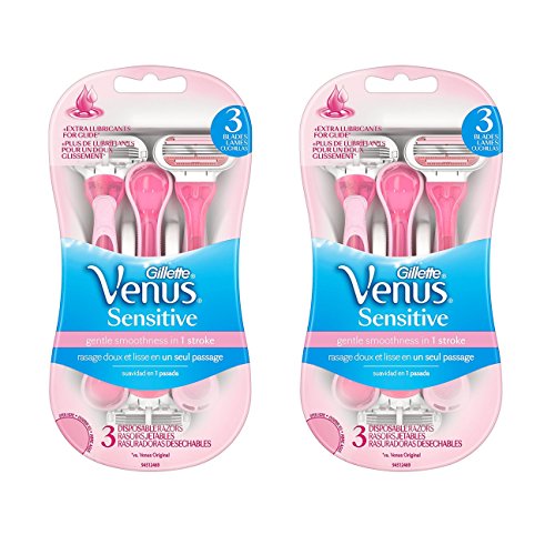 Venus Sensitive disposable razors for women give you a close shave and silky smooth skin. Venus Sensitive disposable razors contain a pivoting rounded head to fit easily into hard to shave areas and 3 razor blades surrounded by protective cushions. Each package contains 8 Venus Sensitive disposable razors.Feature