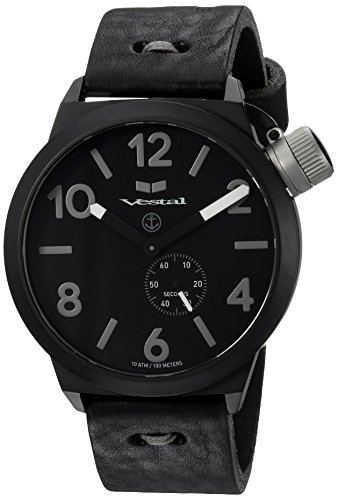 -. Title : Vestal 'Canteen Makers' Quartz Stainless Steel and Leather Dress Watch, Color:Black (Model: CNTMAK003)
