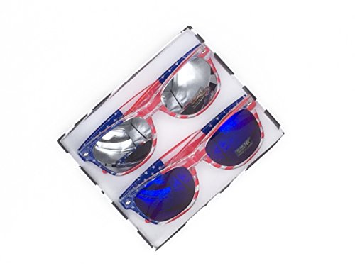 Brand New Sunglasses. The lens have small defects in the flag print.Tiny spots were missed when the flag print was put on the lens. They are not Scratches! The glasses have tags! American Flag Sunglasses! Adult Sunglasses! Metal Frame with Flag LensesFeature