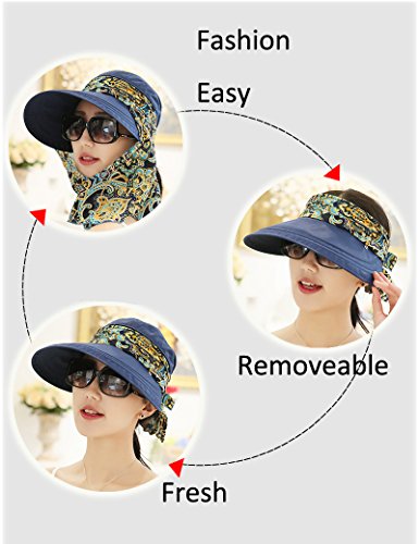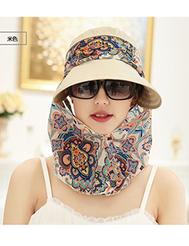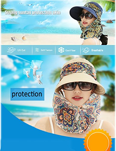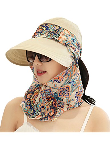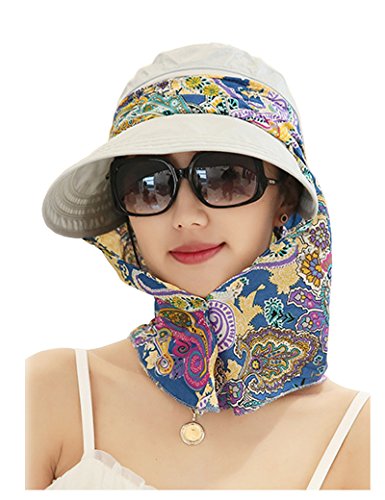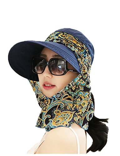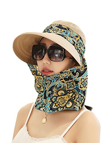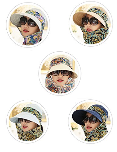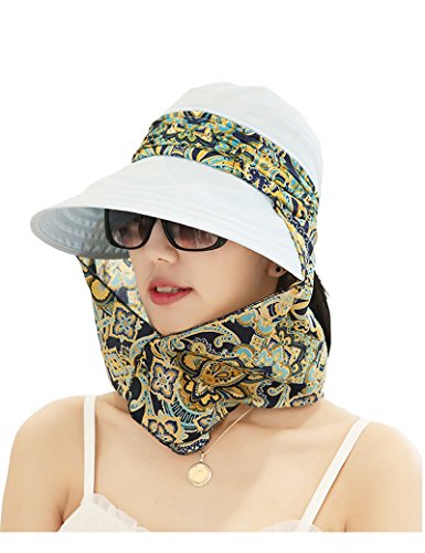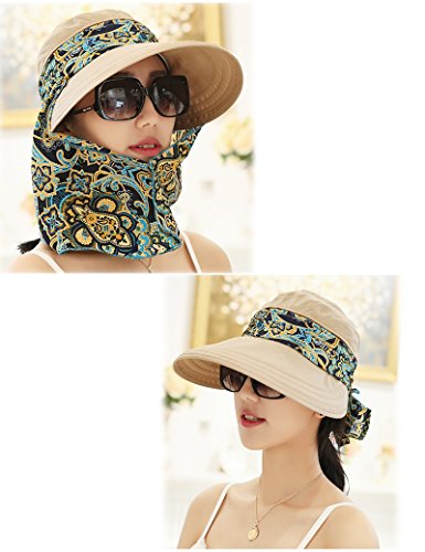 Lujuny Ethnic Style Summer Sun Hat with Scraf Neck Cover 2in1 UV Protection Wide Brim Visor Cap for Women