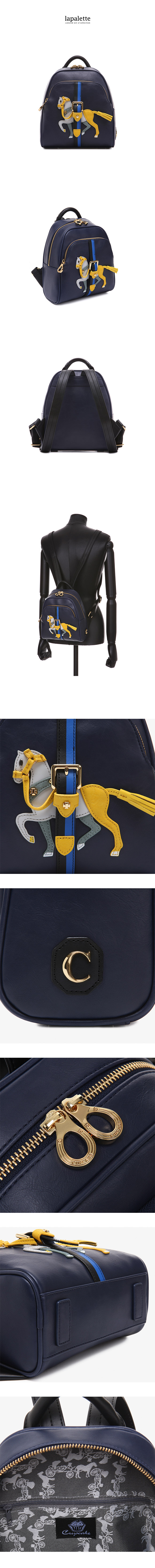 lapalette introduces a renewal version of brand bestselling ‘BELTED HORSE LINE’ in a vintage color way and details. The horse patch and silk P.R.Inted belt detail complete its unique style. Added a front zip pocket on this basic shape of backpack to present cute casual mood. Two-way zip closure assures convenient use and safe carry. Fully adjustable straps are perfect to cover wide range of user age. (Possible to be carried by a kid) A great accent for both easy casual outfits and cute girlish outfits. |