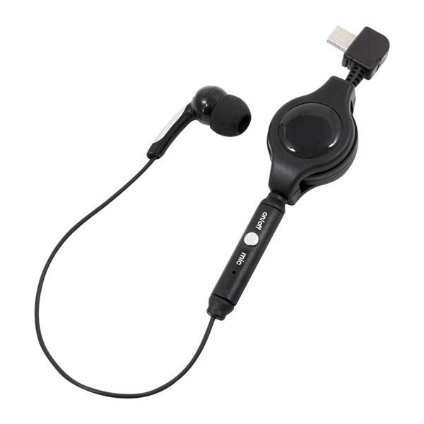 | スイッチ1つで着信応答・通話終了の操作ができるスイッチマイク付きイヤホン。L字型のmicroUSBコネクタを採用しているので、コードの根元部分へのダメージを軽減します。イヤホンは遮音性の高い耳栓型(カナルタイプ)で、好きな長さに調整できるリールタイプを採用しています。 |