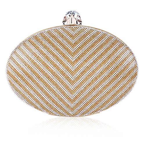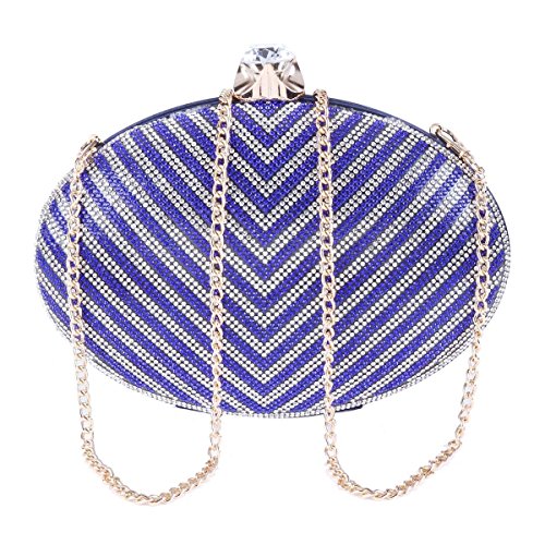 Product Description Glitter and unique, this funky clutch showcases a sparkling rhinestone design on a oval hardcase clutch with rounded edges.With rhinestone closure, this handbag includes detachable chains.Measurement is app 22x16x3cm(8.66x6.3x1.18inch) Chain 120cm(47.24in) 0