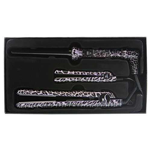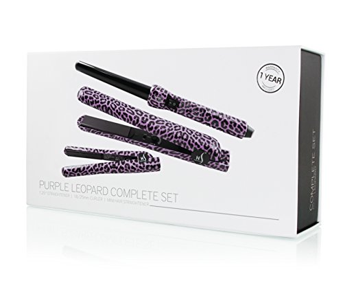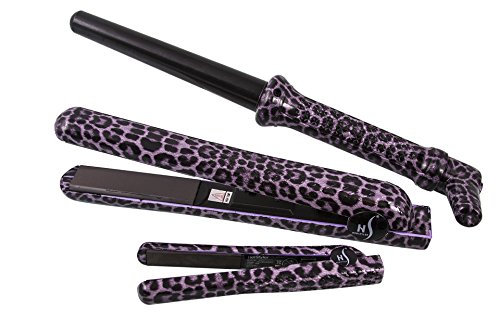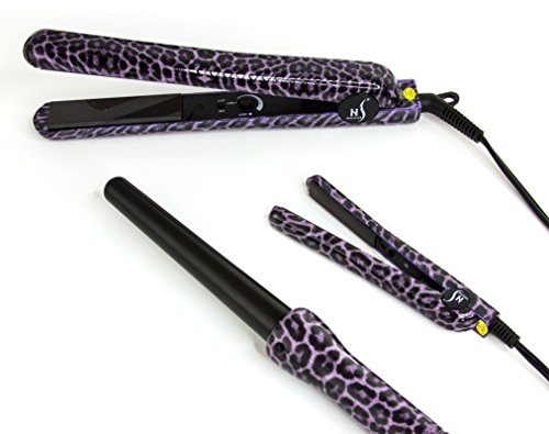 Herstyler Complete Flat Iron and Curling Iron Set, Dual Voltage, Purple Leopard