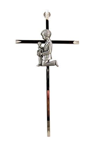 First Holy Communion Silver Tone Wall Cross with Fine Pewter Boy Casting, 8 Inch