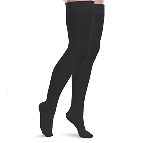 Core-Spun 20-30mmHg Moderate Graduated Compression Support Thigh High Socks (Black, 3X-Large Long)
