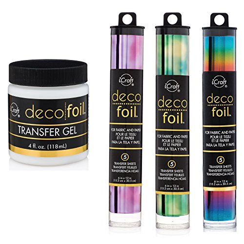 Deco Foil Transfer Gel + 3 Gold Foil Pack Sheets Amethyst, Emerald and Rainbow