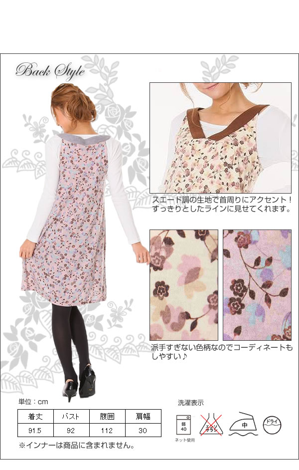 マタニティ期間をハッピーに過ごすニット花柄ワンピース!派手すぎない色柄なのでコーディネートもしやすい♪やわらかでやさしい手触りの生地がGOOD☆サイズ/フリー 日本製 ※サプライヤー直送品  ご注文後、当日~1営業日後の出荷となります【商品名】ニット花柄ワンピース OEV-A40 01アイボリー