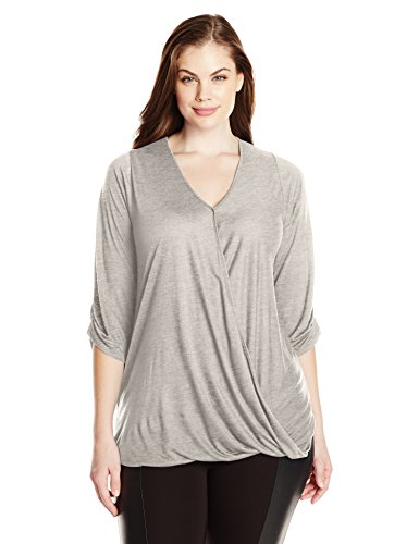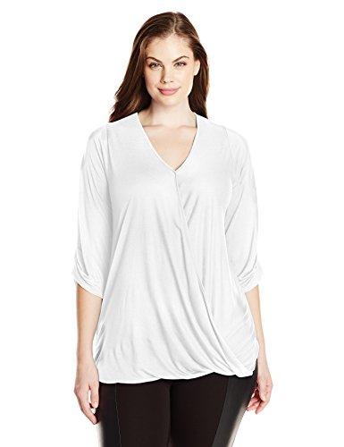 -. Binding : Apparel -. Brand : Paper Tee -. Department : womens -. Feature : Solid-tone top featuring V-neckline with draped surplice bodice / Gathered three-quarter sleeves -. Label : Paper + Tee Womens Child Code -. Manufacturer : Paper + Tee Womens Child Code -. Model : K63213AX -. PackageQuantity : 1 -. ProductGroup : Apparel -. ProductTypeName : SHIRT -. Publisher : Paper + Tee Womens Child Code -. Studio : Paper + Tee Womens Child Code -. Title : Paper + Tee Women's Plus-Size V-Neck Three-Quarter-Sleeve Drape Front Top