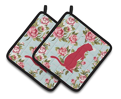 Caroline's Treasures Meerkat Shabby Chic Blue Roses Pair of Pot Holders BB1118-RS-BU-PTHD, 7.5HX7.5W, Multicolor