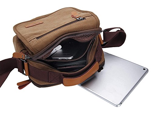 Bagerly Small Canvas Vintage Shoulder Bag Multi-Pockets Crossbody Business Messenger Bags