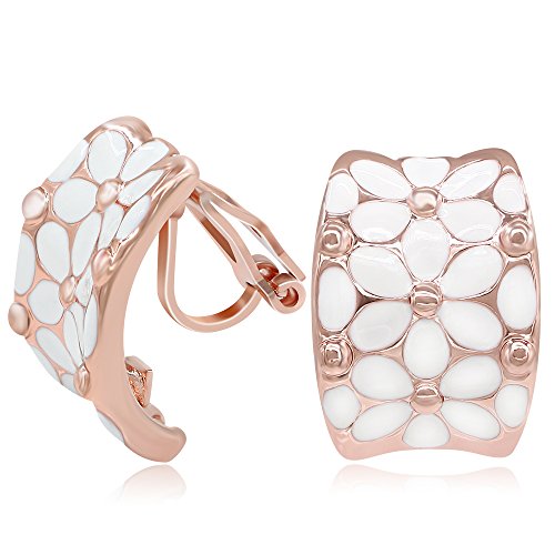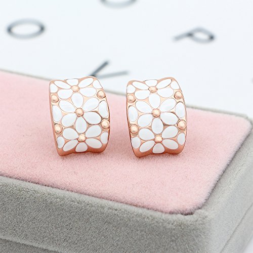 Lovely and feminine, these rose gold plated stud earrings feature flowers made of white enamels. A sweet and stylish accessory that's great for everyday wear.
