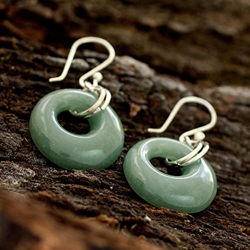 About this item: Shaped of jade, prized by the Maya, these sleek earrings evoke the goal hoops in the pre-Hispanic ball game. Pablo Castellanos suspends the gems from sterling silver hooks. .925 Sterling silver hooks. Jade has been bleached. The earrings measure 1.5" by 0.8".