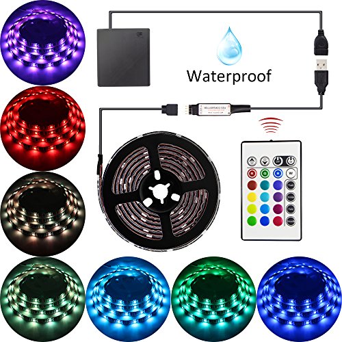Led Strip Lights Battery Powered USB TV Backlight,abtong Led Lights Strip with RF Remote RGB Led Strip Rope Lights Waterproof Bias Led Lights Multi Changing Color Led Strip Lighting-2M/6.56ft