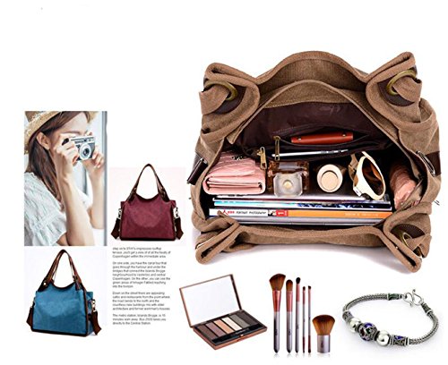 Description: The casual hobo tote bag is made of canvas and faux leather; Top handle length: 7.87 In. The canvas shoulder handbag can hold your purse, ipad, cellphone, makeup, gunglasses, tissue, and some bits and pieces.It has easy access to your daily stuff. The vintage handbag purse has 2*open pockets for cellphone and cards, 2*inner zipper pockets and 1 main inner pocket. You can easily match the tote handbag to your outfit, carry it in a number of occasions, such as shopping, dating, working, college and etc. With extra shoulder strap, it has three carrying ways: tote, single shoulder and crossbody. Approx Size: 15.75(L)* 7.09(W)* 14.96(H) IN Weight:0.9 KG Note: Since the item is measured by manual measurement, the size of the actual item you received could be slightly different from the size we listed on website. Meanwhile, please be reminded that due to lighting effects/ environment, monitor's brightness / contrast settings etc, there could be some slight differences between the color tone of the pictures and the actual item. KISS GOLD(TM) is US registered trademark(Registered NO.: 4734997).We produce Briefcases; Canvas shopping bags; Cases for keys; Credit card cases; Garment bags for travel; Handbags; Haversacks; Key cases;Pocket wallets; Rucksacks; School bags; Traveling bags; Unfitted vanity cases; Valises. Kindly remind to all customers:We have never authorized any other seller to sell our products and will pursue legal action to sellers who sell our items in Amazon! 0 |