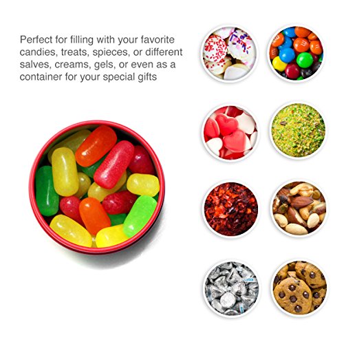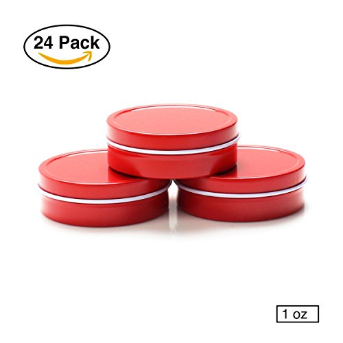 Mimi Pack 1 oz Small Round Tin Can Empty Slip Slide Top Lid Steel Containers For Cosmetics, Favors, Spices, Balms, Gels, Candles, Gifts, Storage 24 Pack (Red)