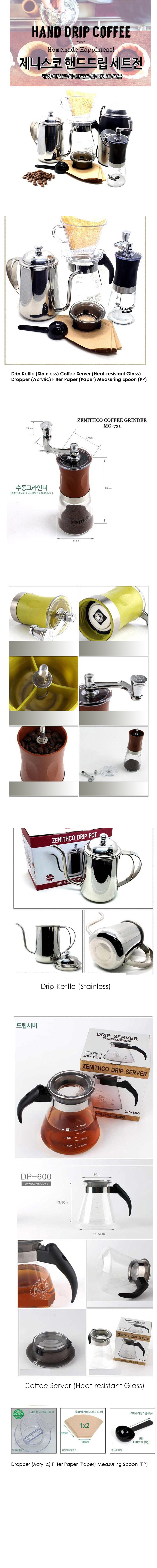 Material: Drip Kettle (Stainless) Coffee Server (Heat-resistant Glass) Dropper (Acrylic) Filter Paper (Paper) Measuring Spoon (PP)