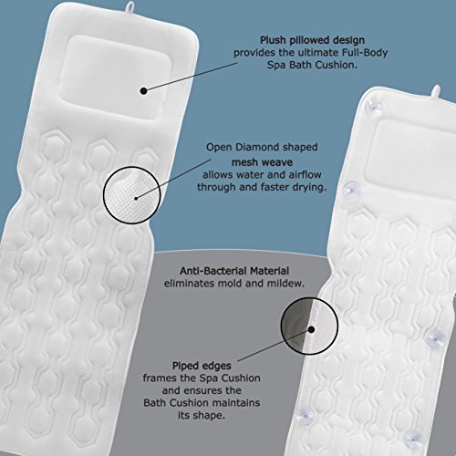 Full Body Spa Bath Cushion: Luxurious Spa Bath Cushion Mat with Headrest| Sturdy, Lightweight, Thick & Large Anti-Bacterial Bathtub Body Pillow...
