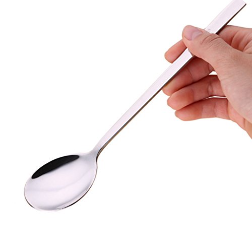 3:The long stainless steel spoon is Made of premium grade stainless steel for superb durability and corrosion resistance, easy maintenance and dishwasher safe.