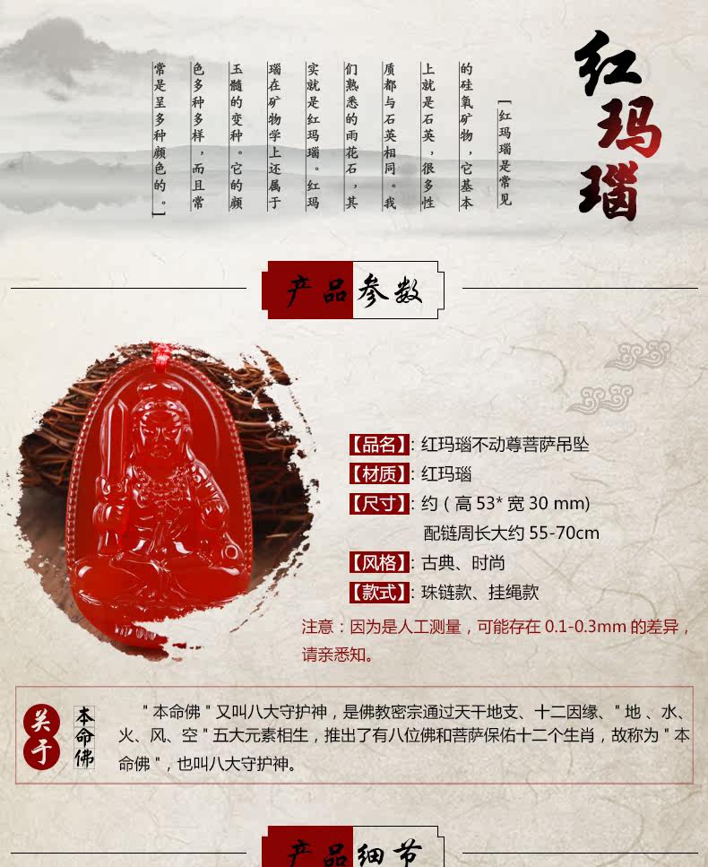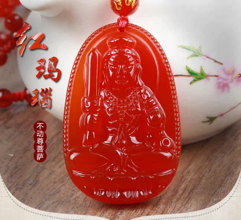 开光天然红玛瑙不动明王吊坠不动尊菩萨属鸡本命佛男女