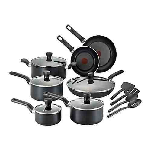 -. Title : T Fal 16 Piece Total Non Stick "Bistro" Professional Grade Cookware Set, Black