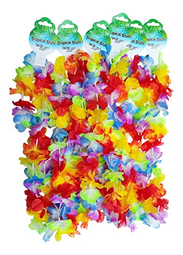 Hawaiian Luau Multicolored Artificial Flower Leis Party Favor Pack of 6