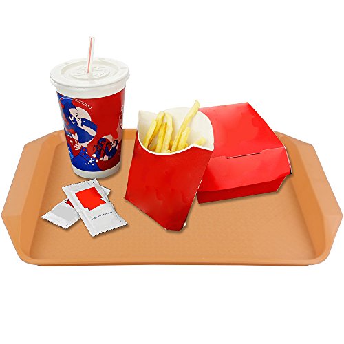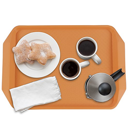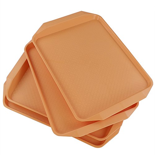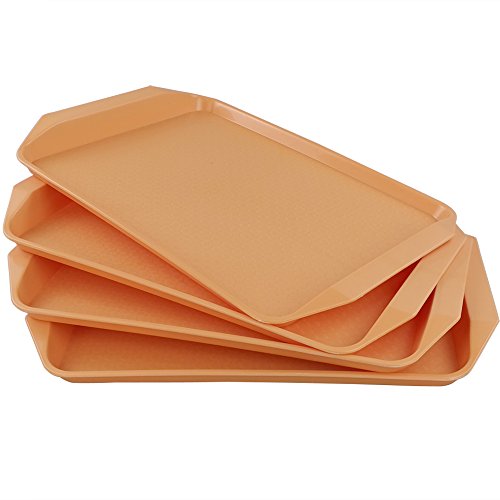 Teyyvn Fast Food Serving Tray, Plastic Standard Cafeteria Tray, Pack for 4 (Orange)