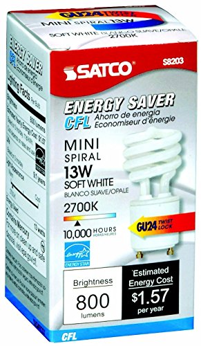 satco S8203 13 Watt T2 Ultra Mini Spiral 2700K Soft White Compact Fluorescent Light Bulb with GU24 Base (60 Watt Replacement) (4-Pack)