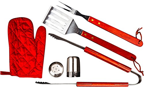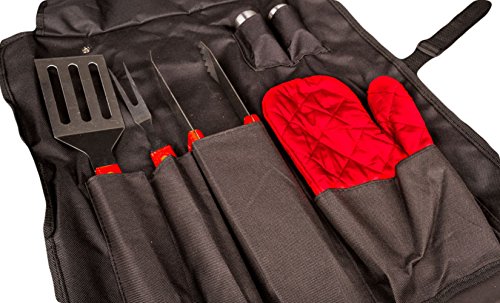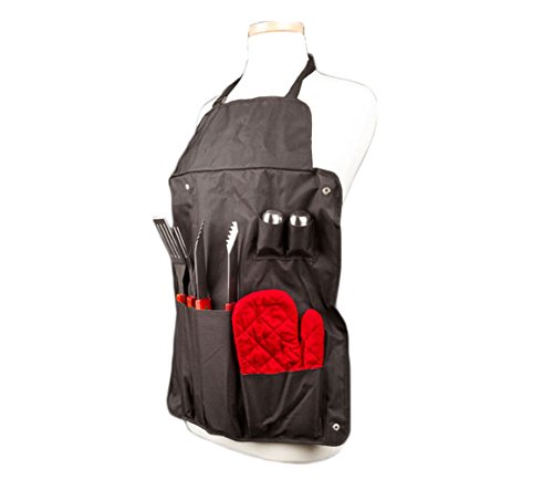 7 Pc BBQ Aprons & BBQ Tools Set - Tong, Fork, Spatula, Shakers, Mitt - Grilling Tool Set