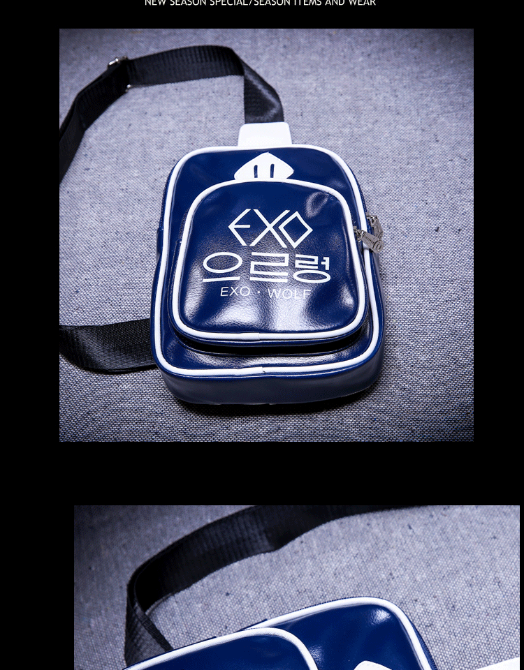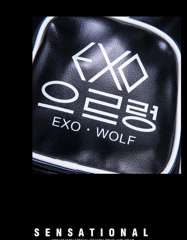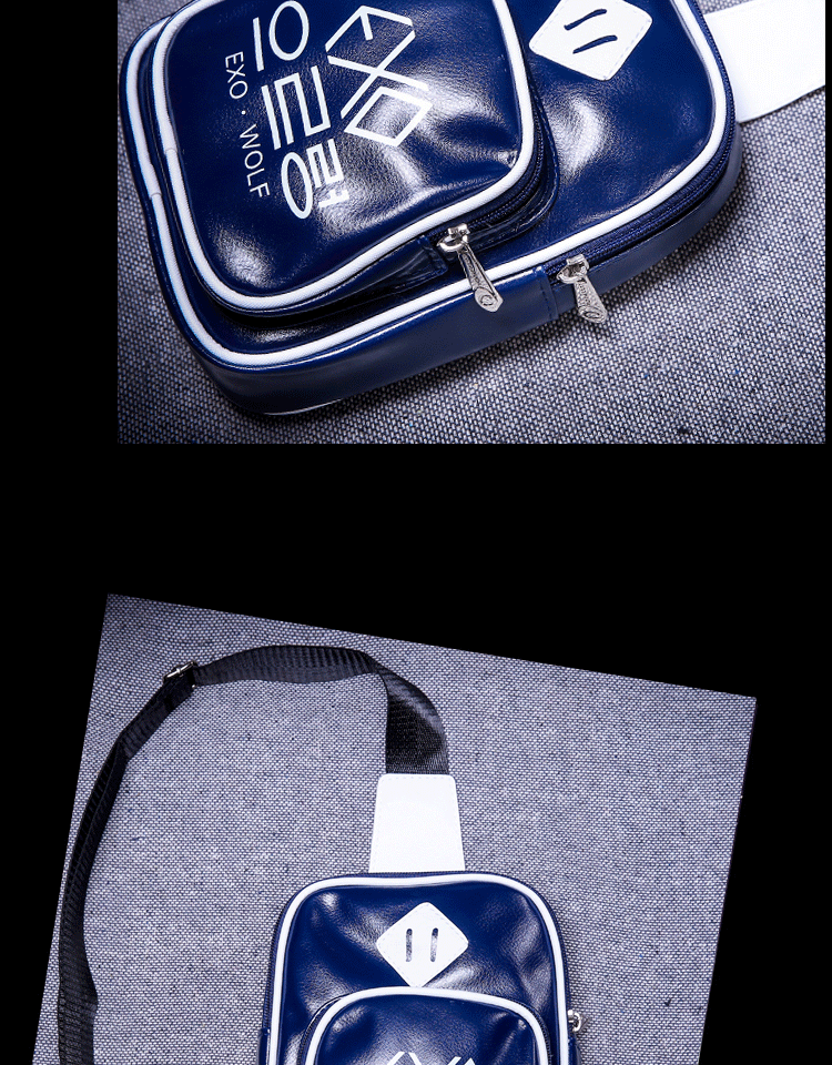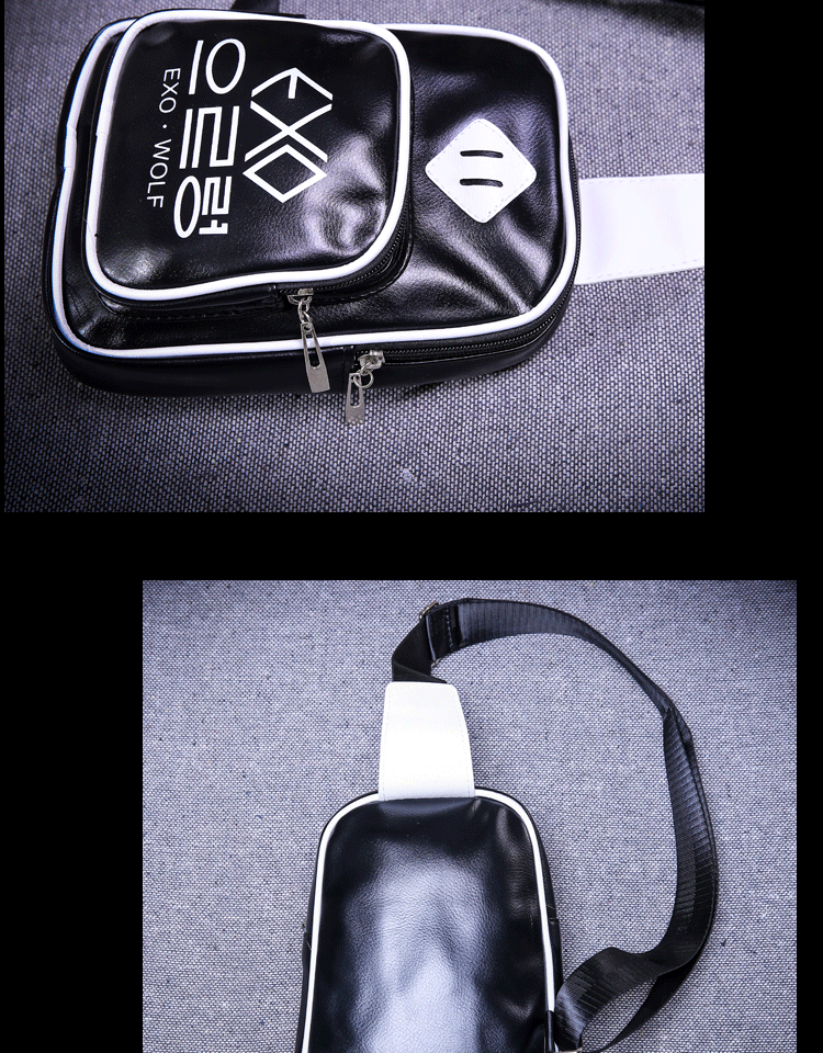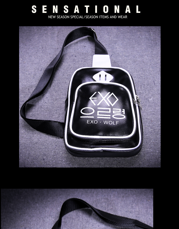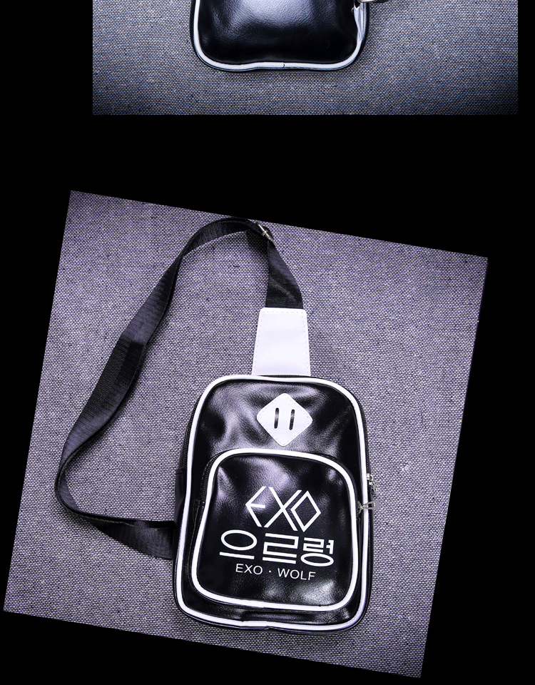 新款韩版潮流EXO字母背包男时尚休闲男士单肩背包PU皮都市风