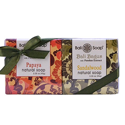 Bali Soap - Gift Set, Natural Bar Soap, 2 pc Set, 3.3 Oz each (Papaya & Sandalwood)