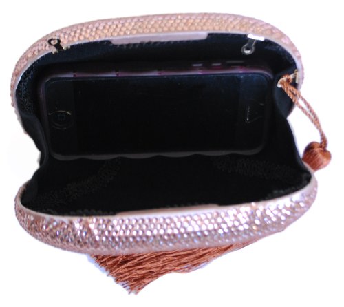 -. Brand : Chicastic -. Department : womens -. Feature : Oval Shaped Clutch / Tassel loop hangs from the purse. It may be tucked inside or removed. / Measures - 6" length x 4" height x 2" width / Chain String attached / **Official CHICASTIC product made and sold exclusively by Chicastic.** Products sold by other sellers may vary. Please check seller before checking out. -. Model : CHIC10060 -. ProductGroup : Shoes -. ProductTypeName : HANDBAG -. Title : Chicastic Rhinestone Crystal Oval Hard Box Bridal Wedding Evening Clutch With Tassel