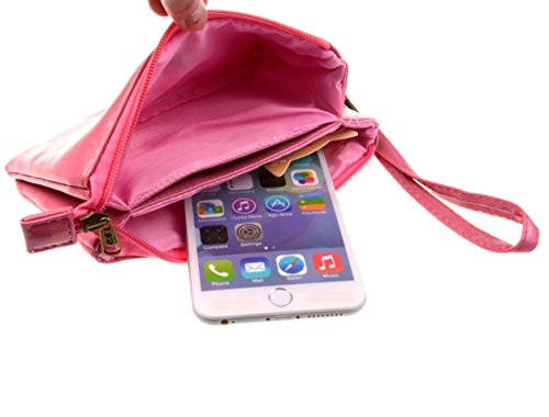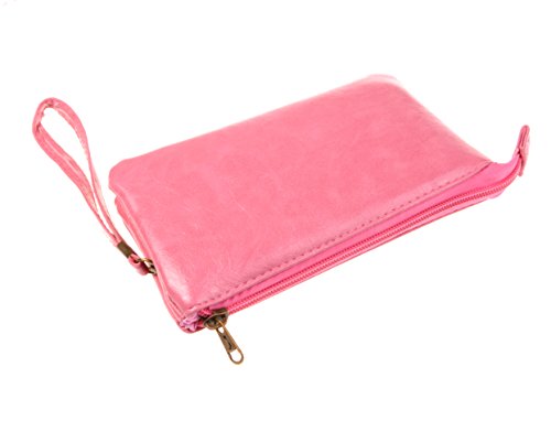 - Title : Bronze Times Unique Leather Cellphone Wallet Pouch with Strap (Pink)