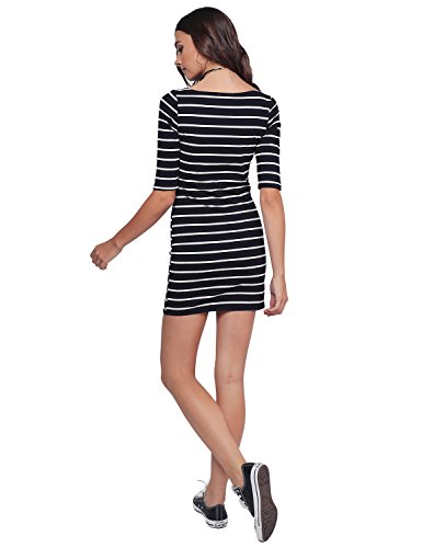 Made by Emma Basic Every Day Boat Neck Stripe 3/4 Sleeve Dress Black White M Size