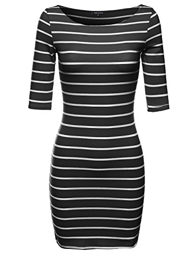 This dress that can also be worn as a shirt features a boat neckline, 3/4 sleeves, tight fit that stretches, and stripe pattern. Super chic and contemporary, this dress is perfect for any occasion.