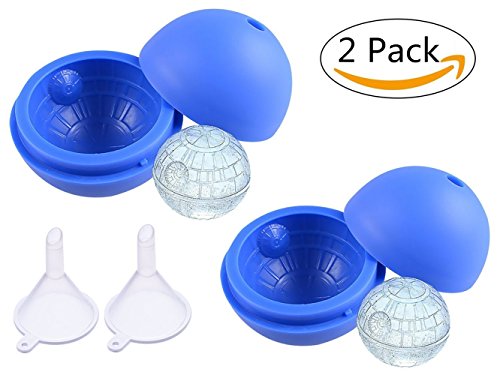 2 Pack Star Wars Silicone Ice Mold Tray Death Star Sphere Ice Ball Maker Mold with 2 Plastic Filling Funnel by Uncle Martin (Blue)
